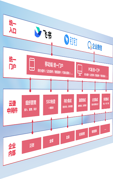 对协作平台提供支持服务,,支持企业应用与协作平台对接,,,包含组织同步、、消息集成、、、待办集成等。。。支持目前主流的协作平台:钉钉、、、企微和飞书。。。。