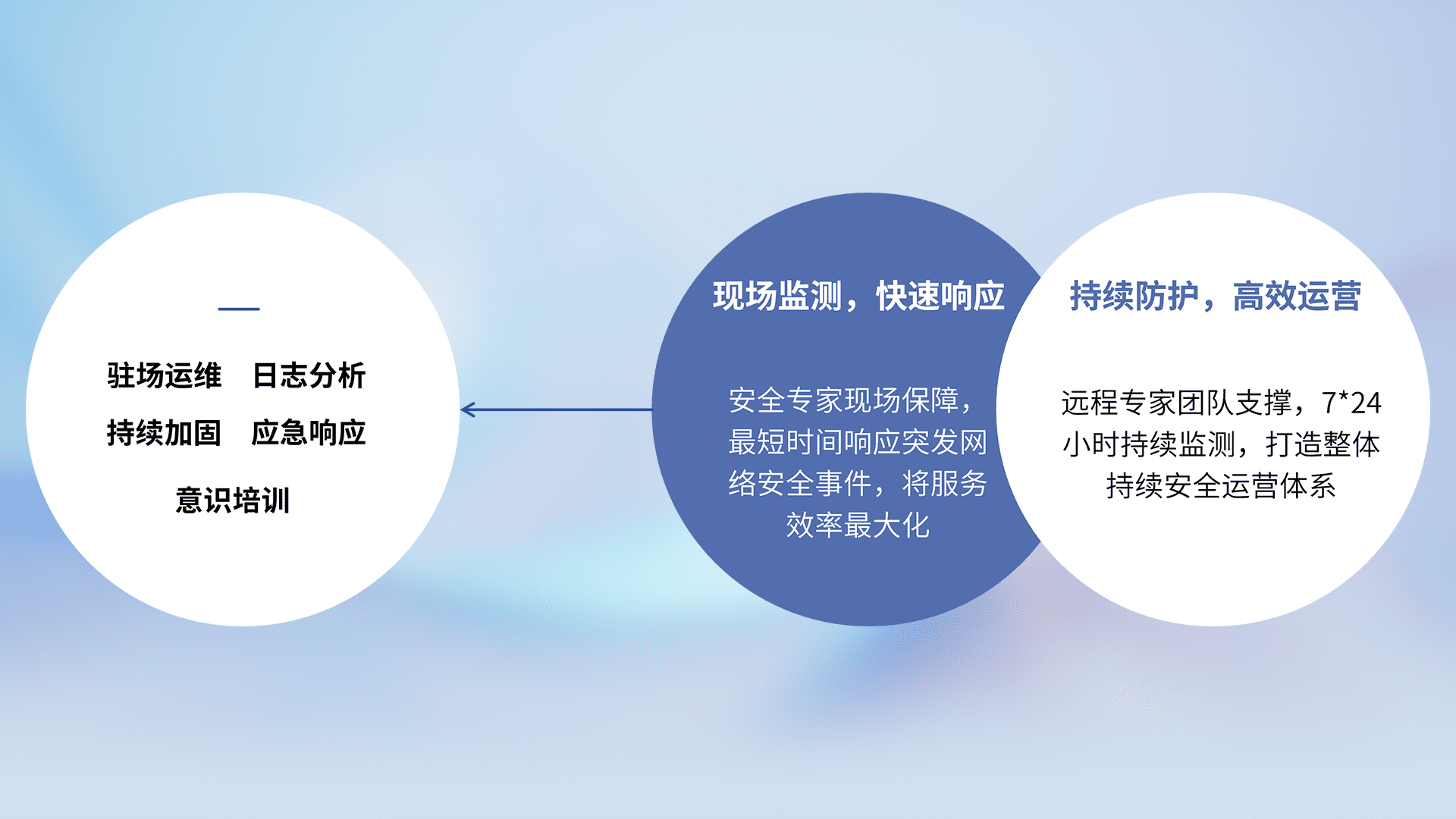 针对客户行业特性,,,,提供专属的一站式安全管理服务,,帮助客户全面感知网络空间威胁,,通过安全专家的线上、、、线下防护支持,,,,实现风险闭环,,,将安全保障常态化,,,,为客户打造常态化安全运维运营服务。。